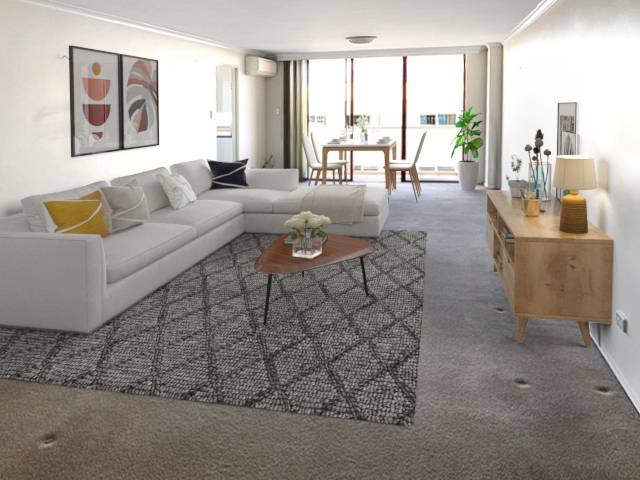 Extra large and bright 1 bedroom apartment with VAST open plan living opening to a large balcony overlooking tennis courts plus sweeping district view.