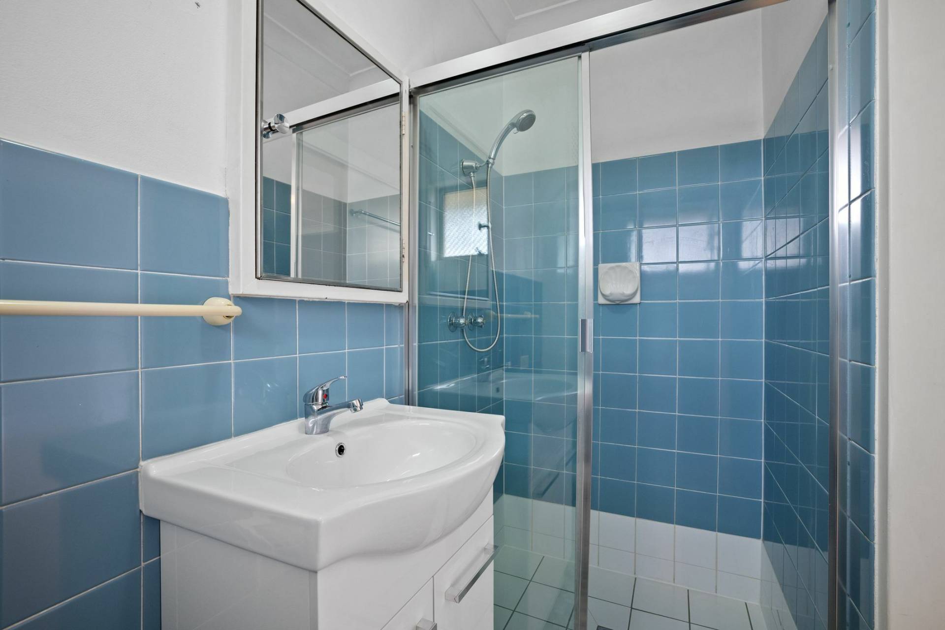 - Pristine light-filled bathroom with a shower