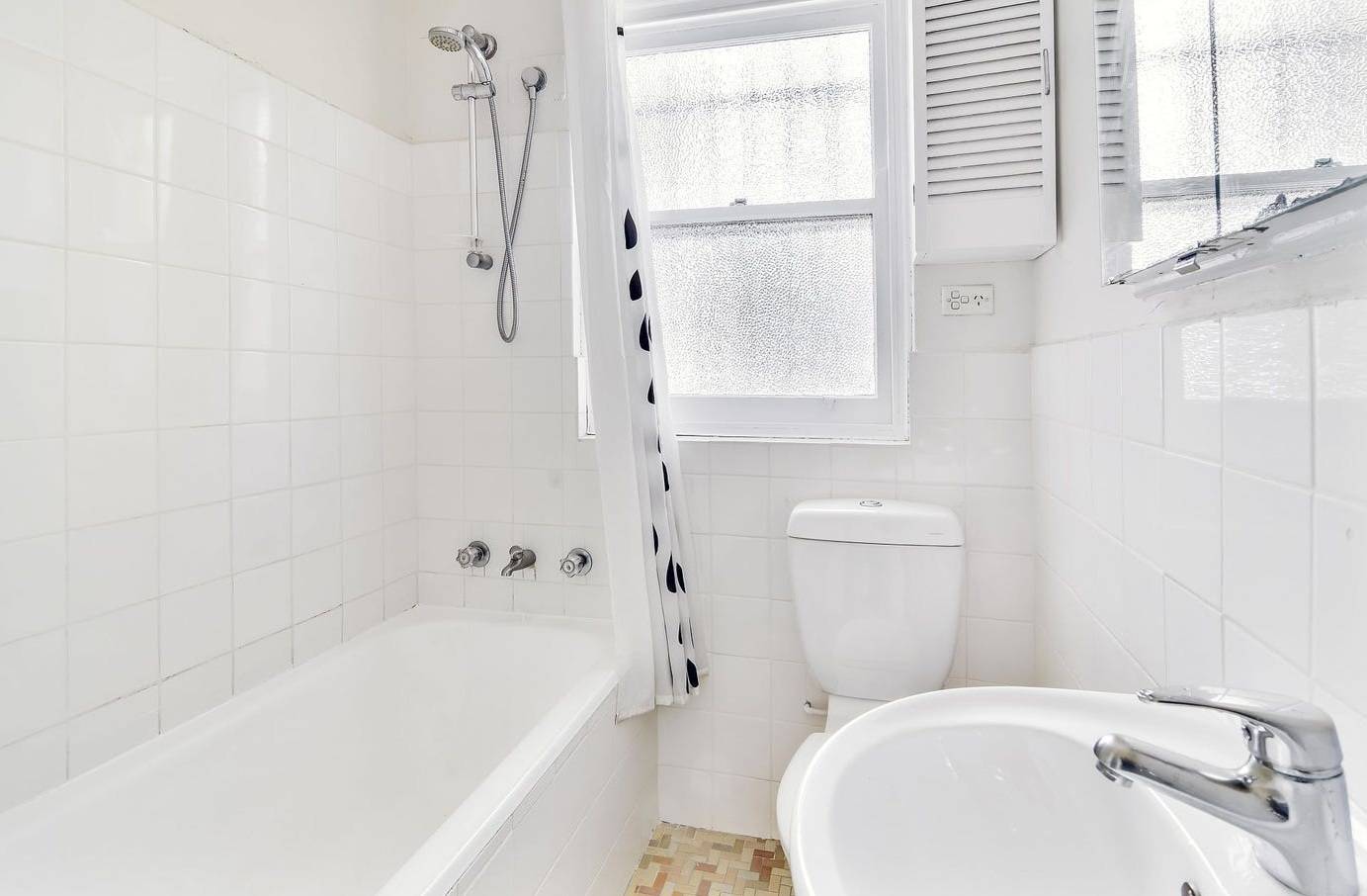 Bathroom with shower over bath.