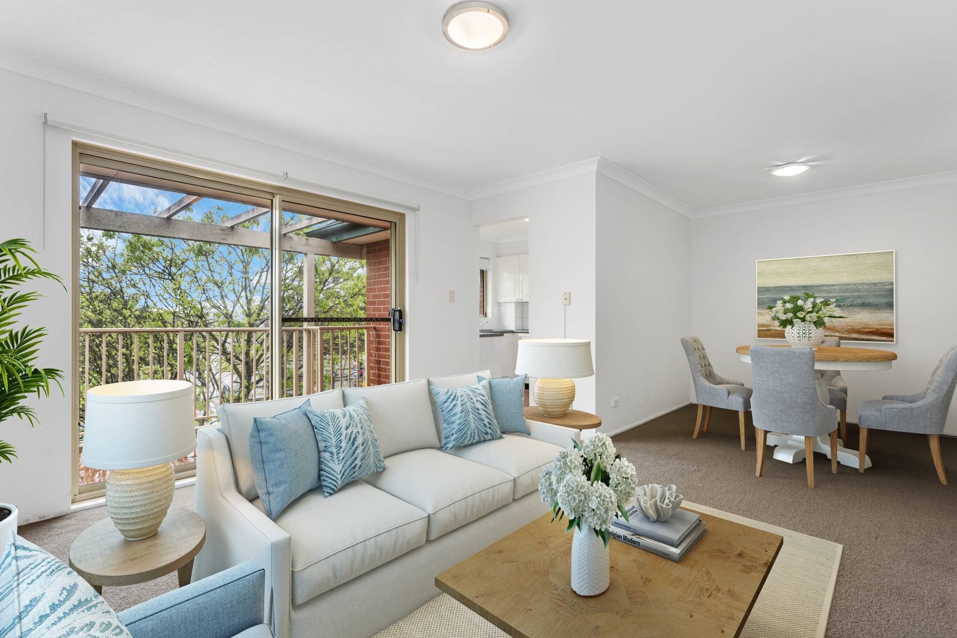 Spacious open plan living and dining flows to balcony