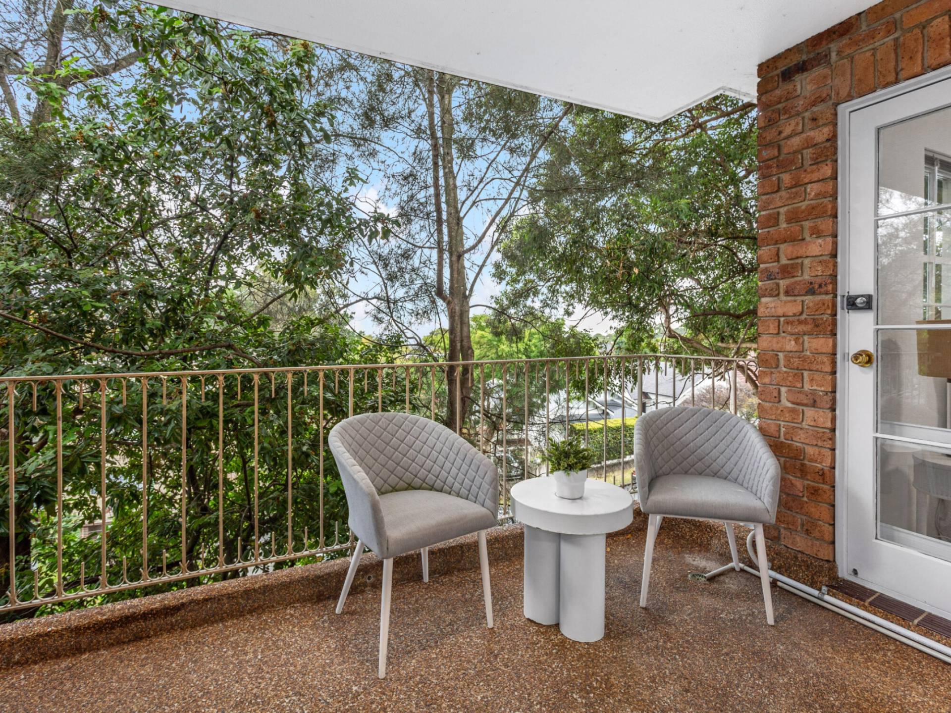 Two balconies, both with leafy outlook