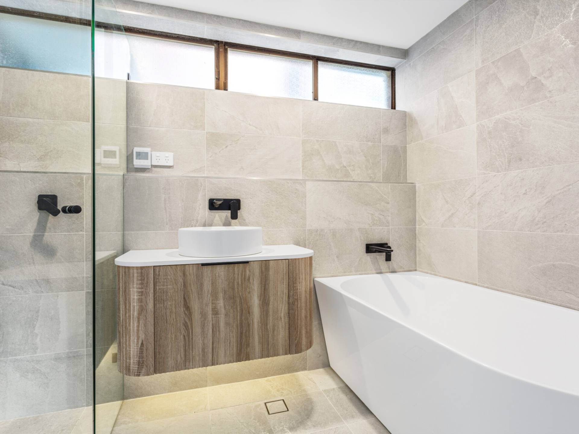 Designer bathroom with separate bath and shower