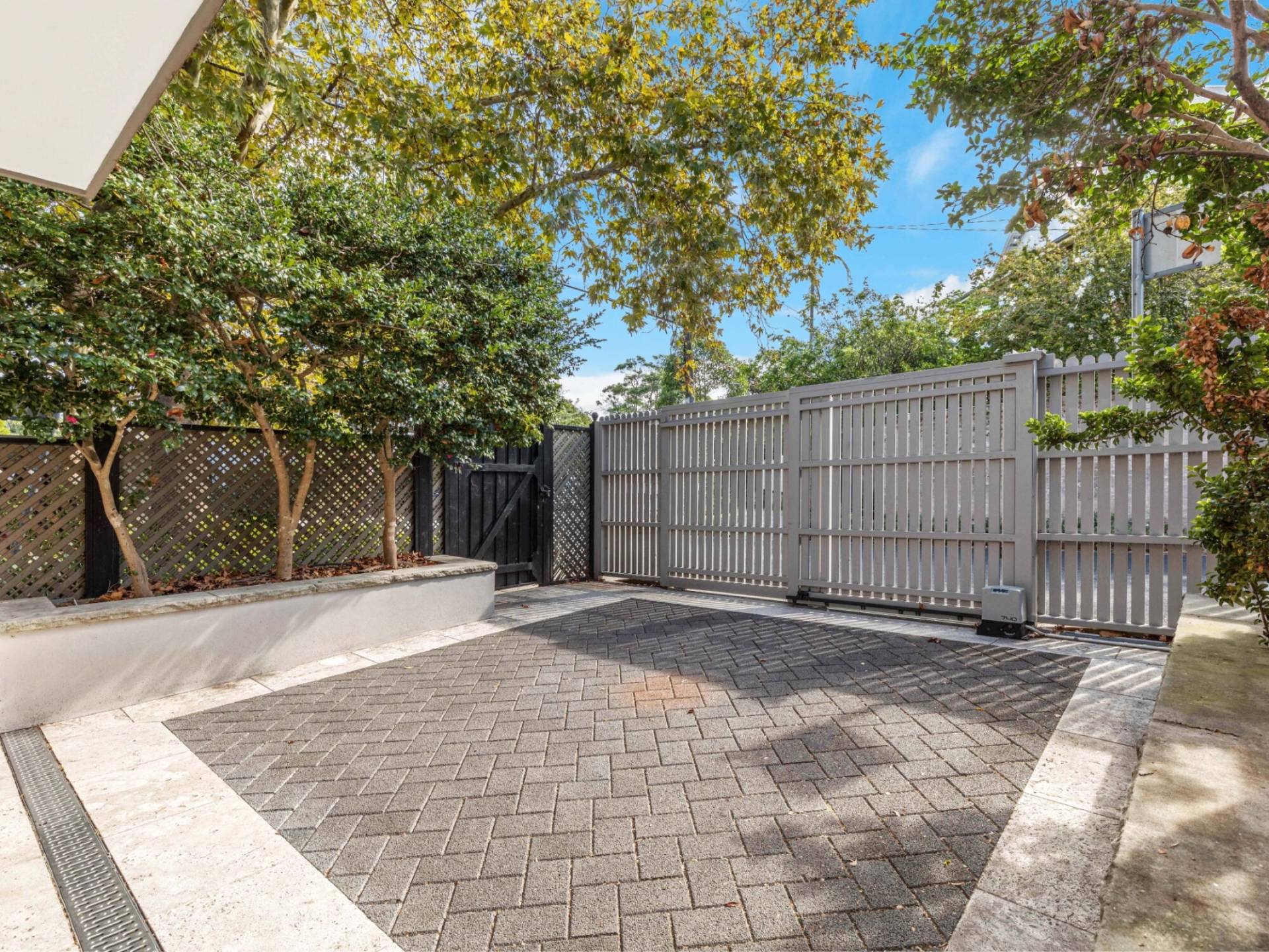 Rear lane access to parking via auto gate entry