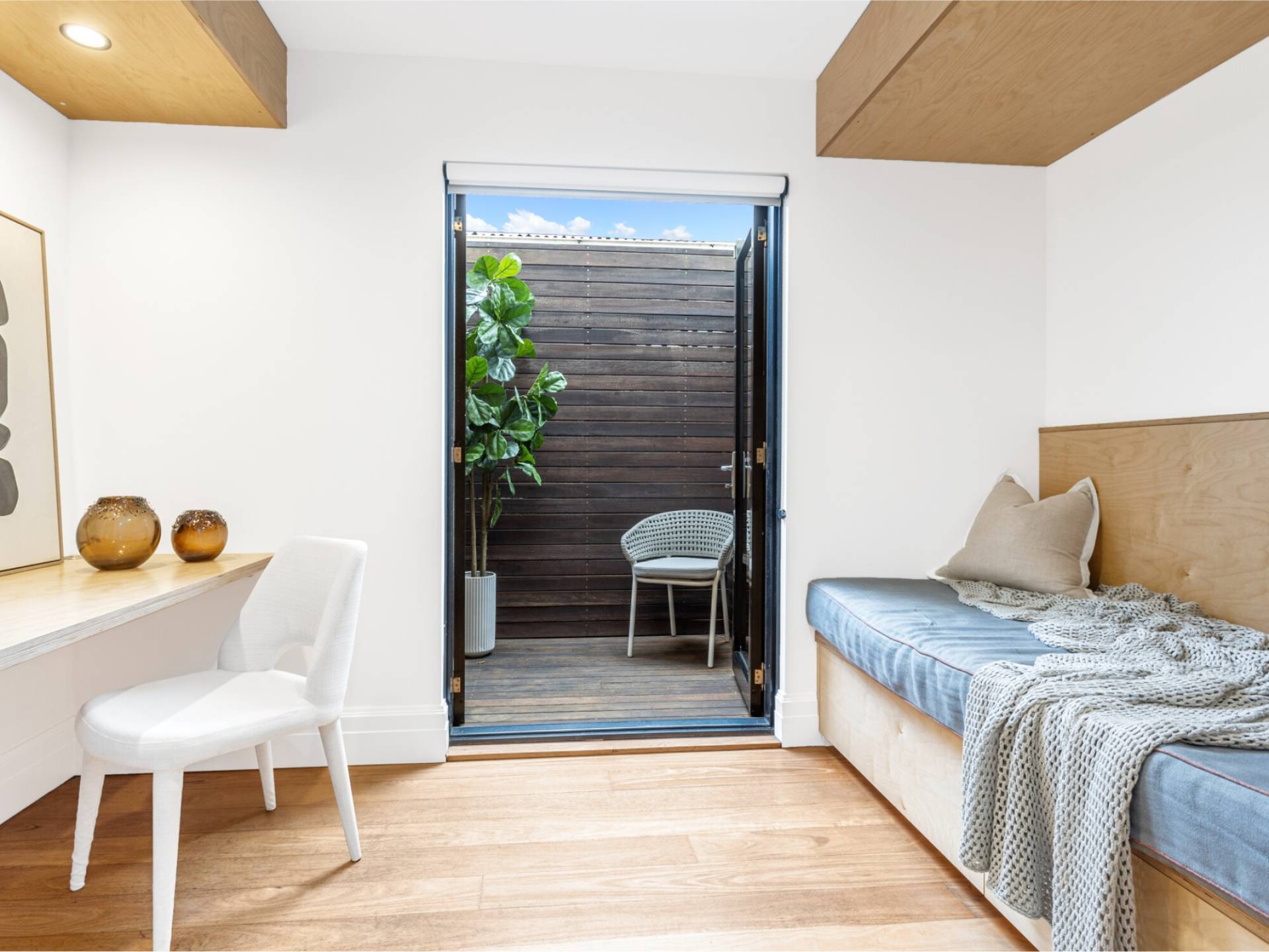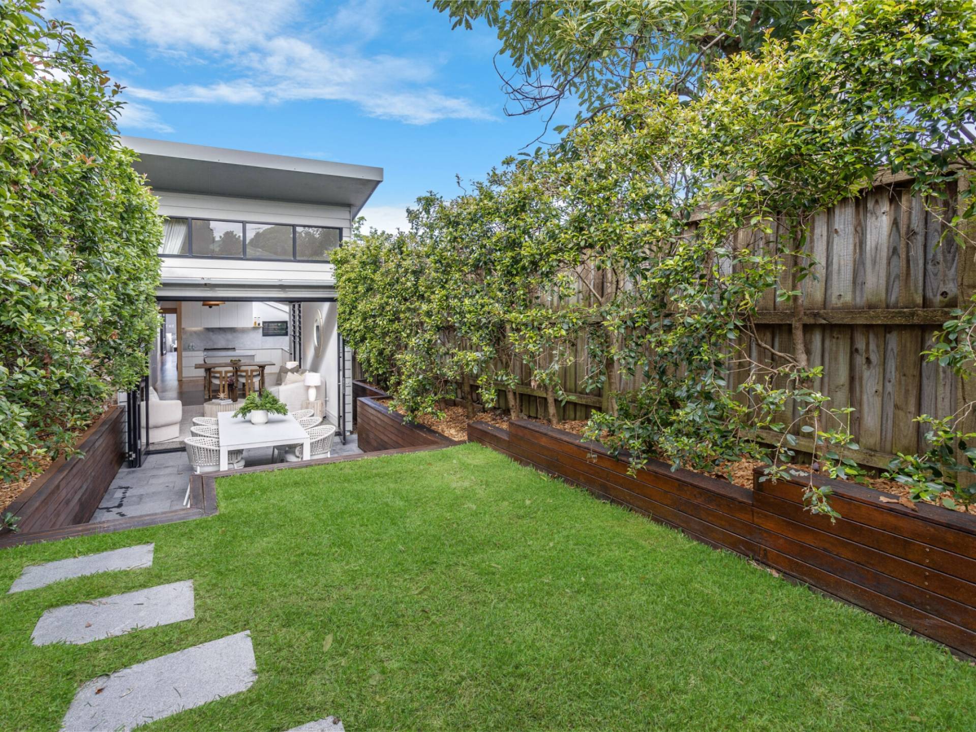 Bi-fold doors provide a seamless flow from the living area to a leafy and private rear courtyard and garden perfect for entertaining