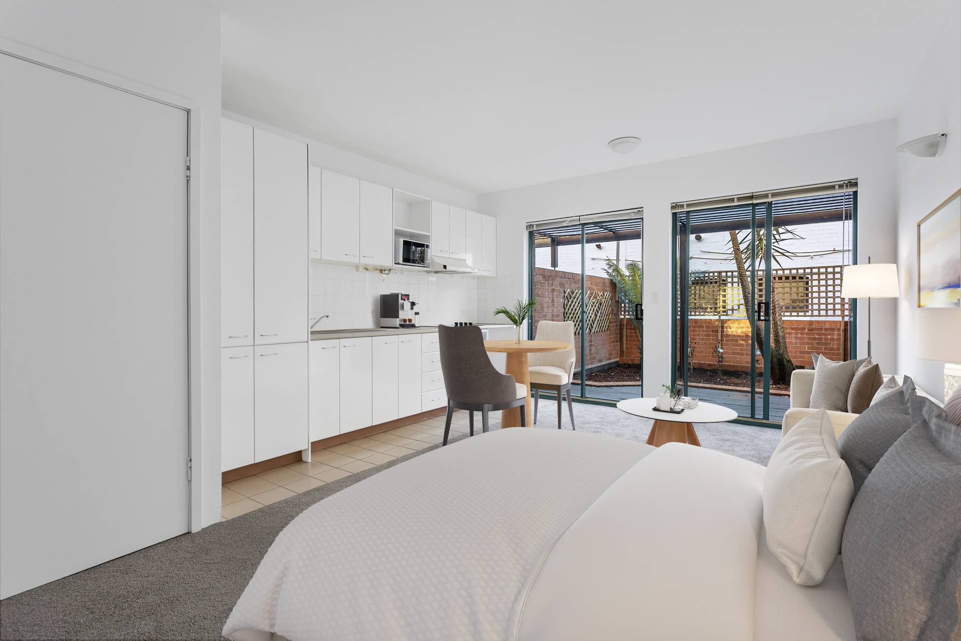 Enjoying a sunny north facing courtyard in this low maintenance security building, this studio apartment presents as an ideal bolt hole or investment convenient to the Metro, cafes and restaurants.