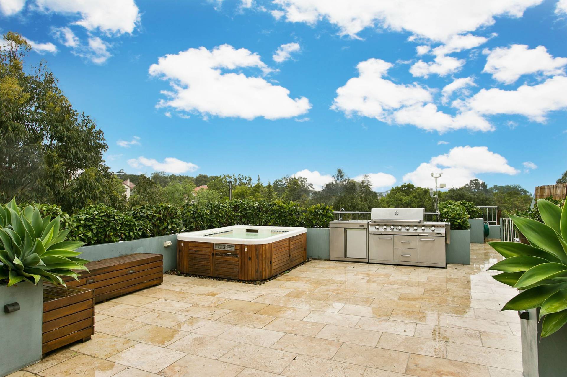 Exceptionally large roof top terrace with sun deck pergola, spa and