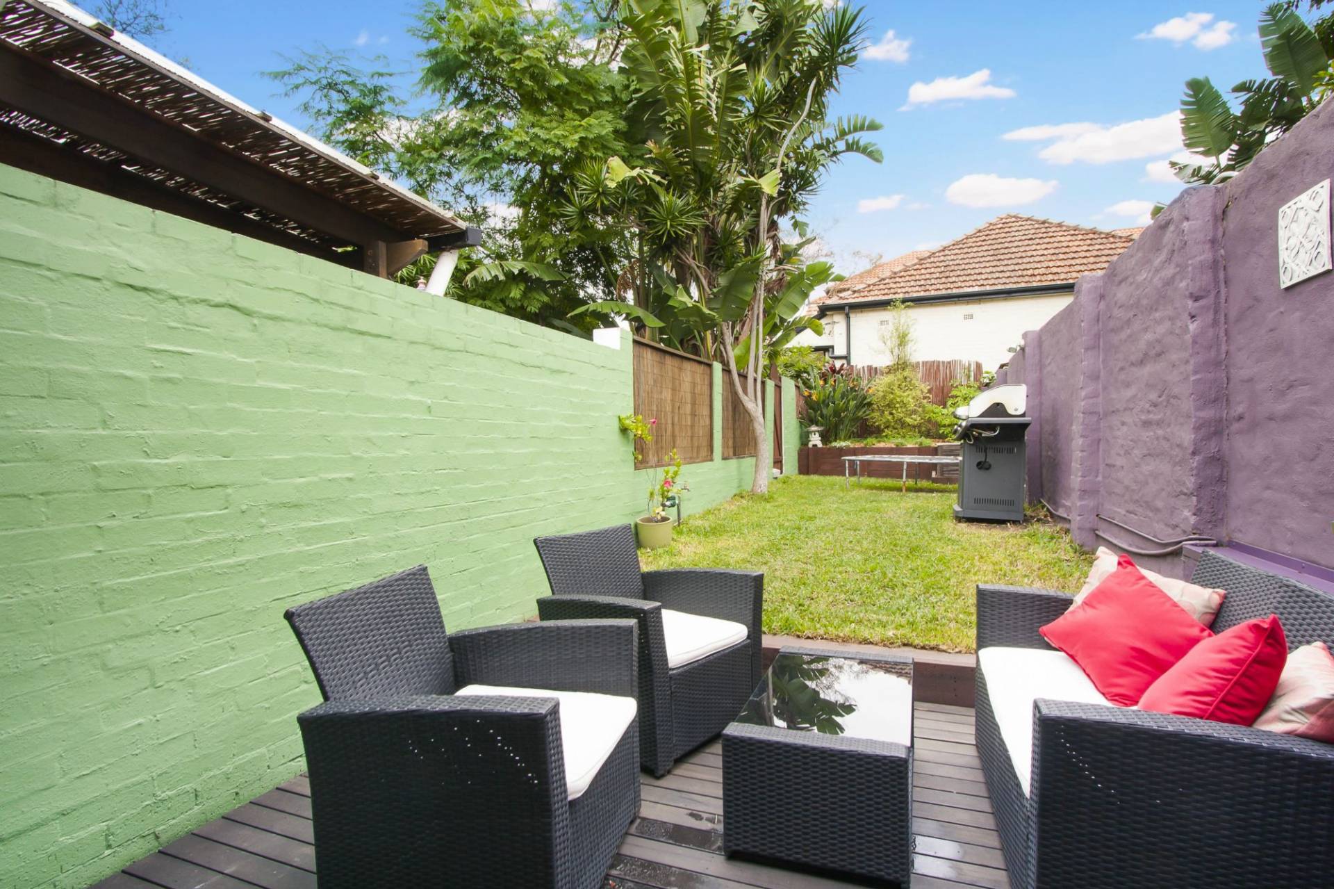 Private deep sunny landscaped rear garden