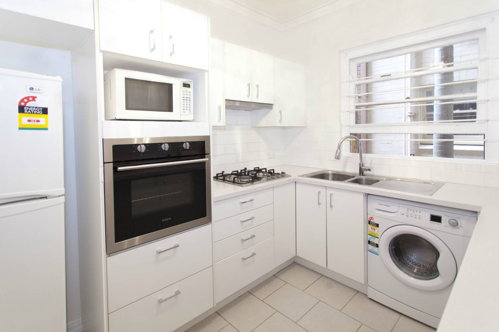 Modern kitchen with laundry facilities