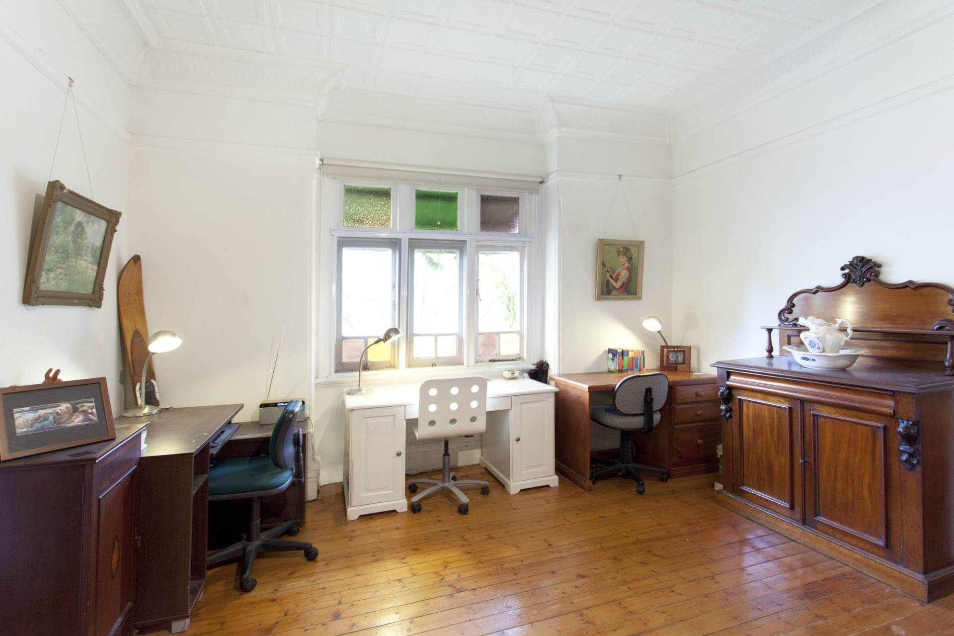 Pressed metal ceilings throughout, timber floors