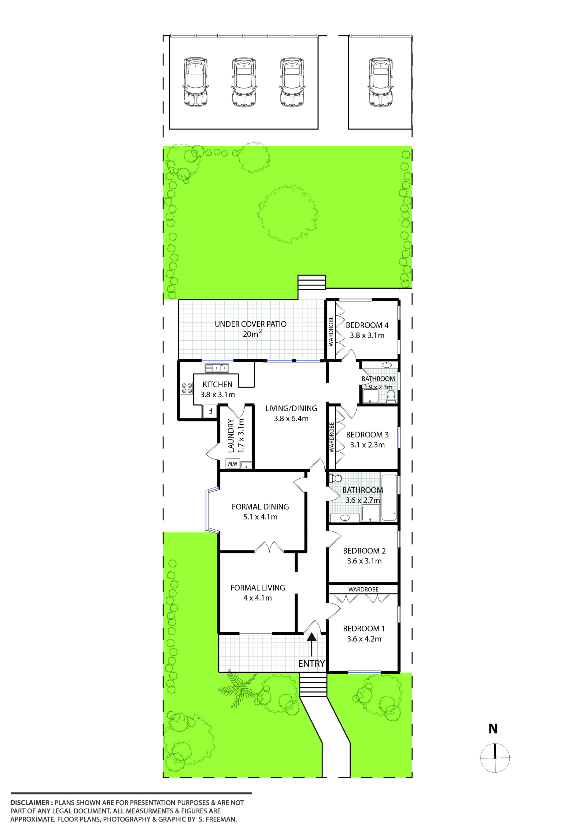4 car garage accessed via rear lane