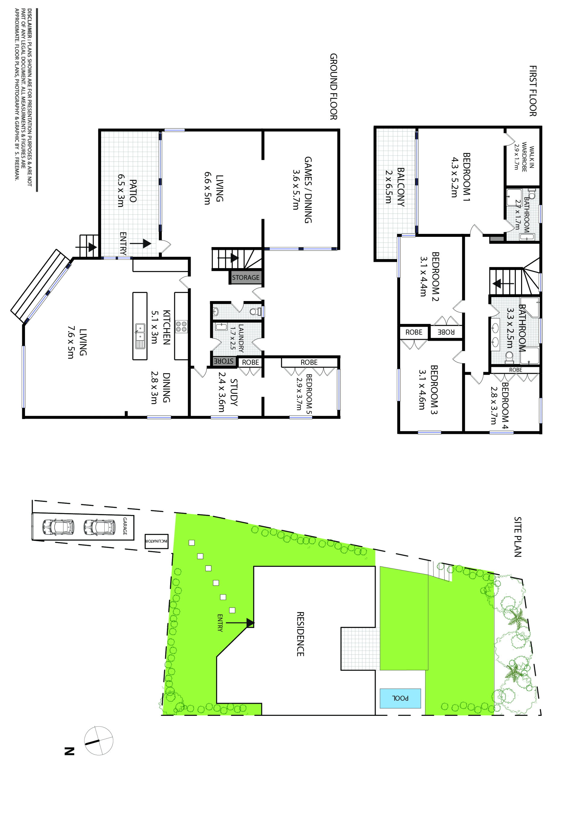 5 bedrooms, main with ensuite & terrace balcony; built ins