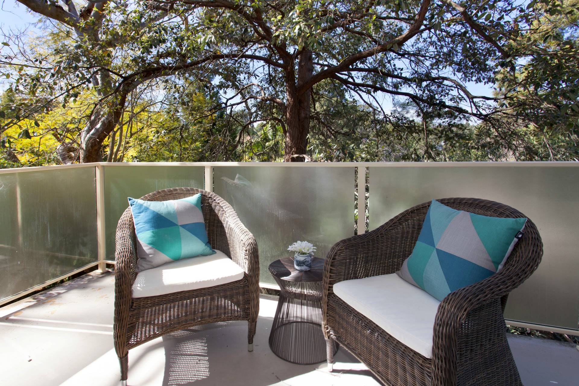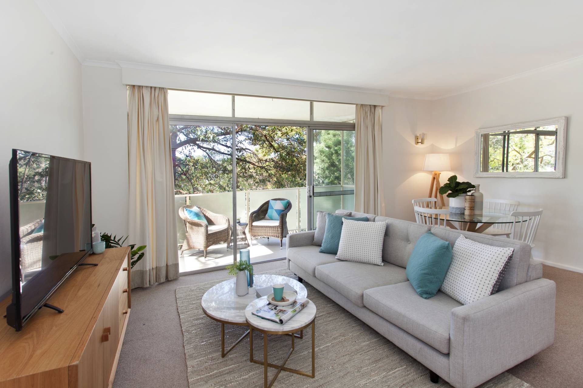 Open plan living flows to a large private balcony