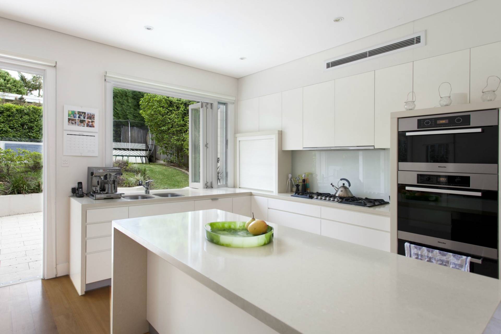 - Stylish gourmet kitchen with marble benchtops, polyurethane cabinets, Miele appliances & large refrigerator