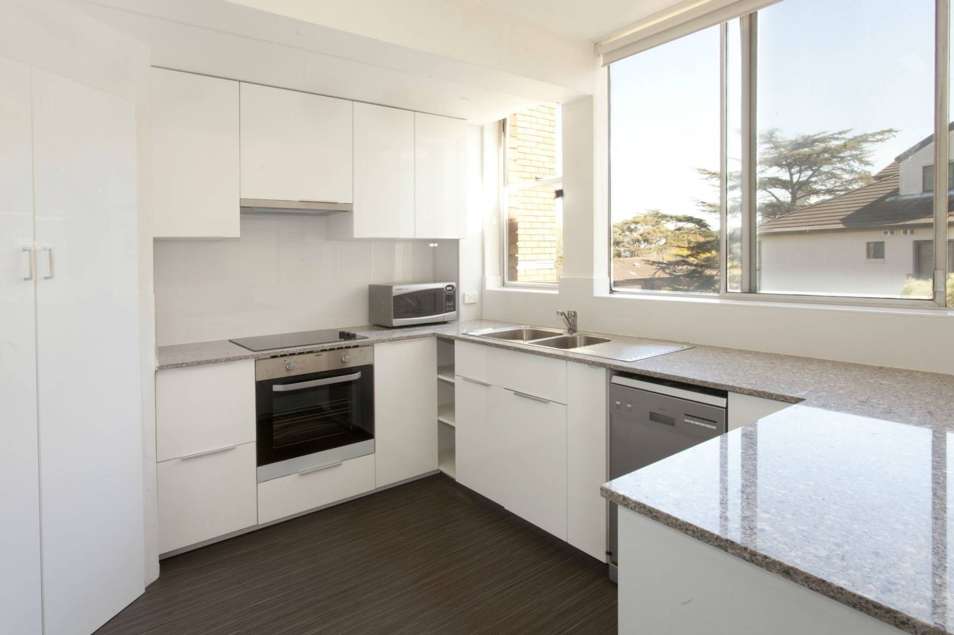 * Modern kitchen with stone benchtops, stainless steel appliances and ample cupboard space