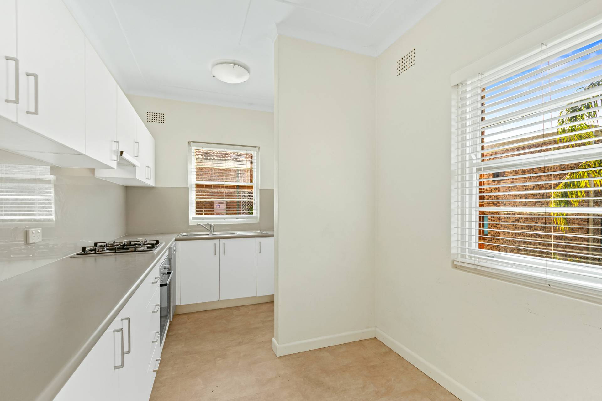 Renovated and spacious 2 bedroom apartment with quality kitchen, gas cooking and dishwasher.